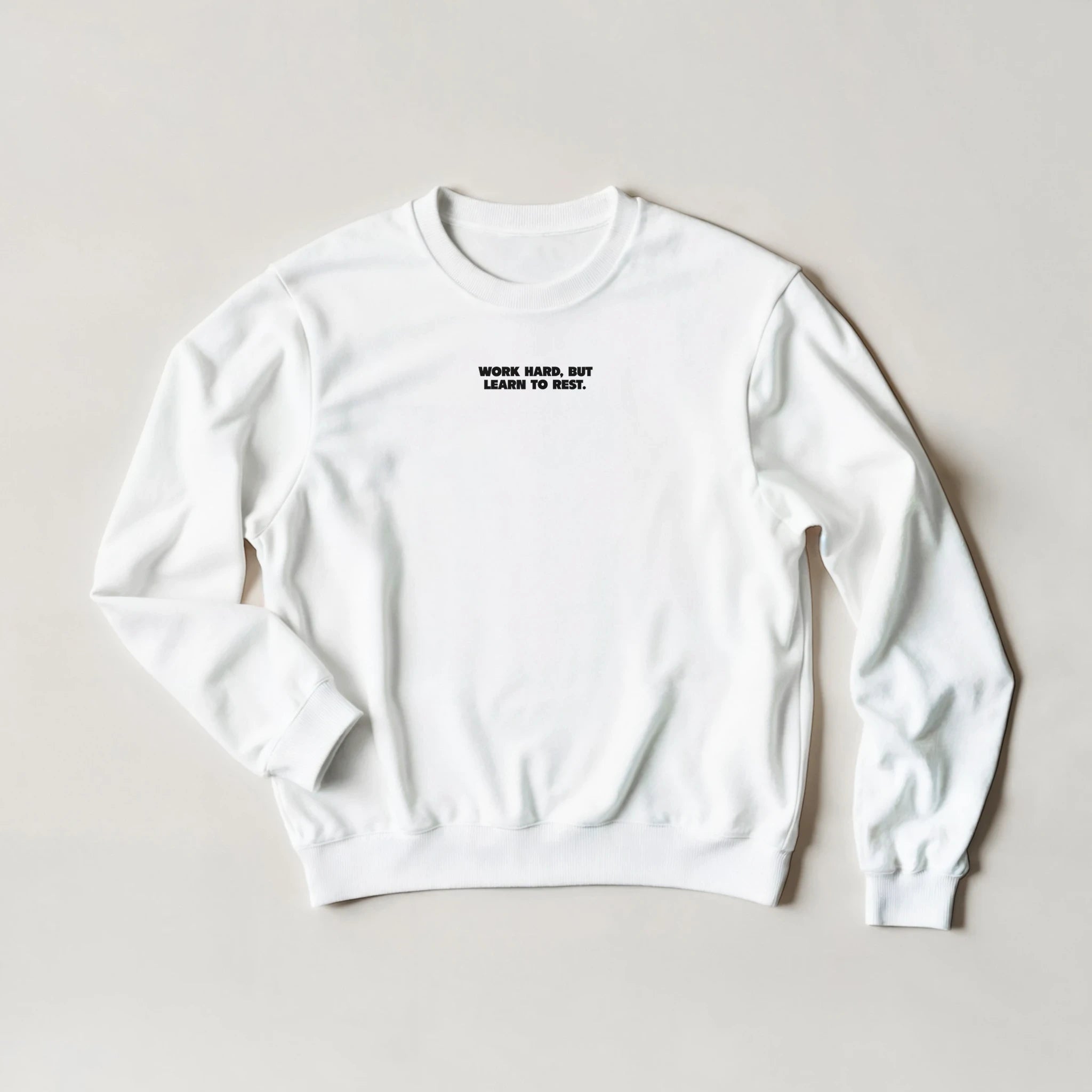 Work hard, but learn to rest – Statement Sweater – Minimal Text. Maximum Attitude. | Unisex Crewneck Sweatshirt (Gildan® 18000)